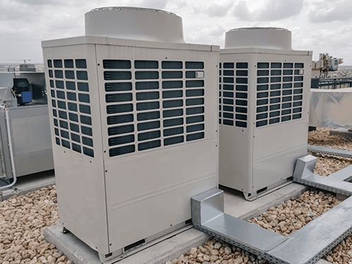 Looking at the electrical drawings, you might find that each unit is spec’d with 200 A single-phase service panel. The PT060 requires a max input of 329 A. This is easily overcome by simply using two PT030 units to power the VRF units separately. Each PT030 can supply 95 A from 165 A of single-phase supply. Not a hard problem to overcome but illustrates the importance of not only checking the total load, but also the available max service size.