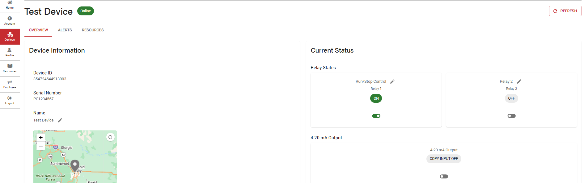 Log in at any time to monitor device status, send commands, or configure alerts.